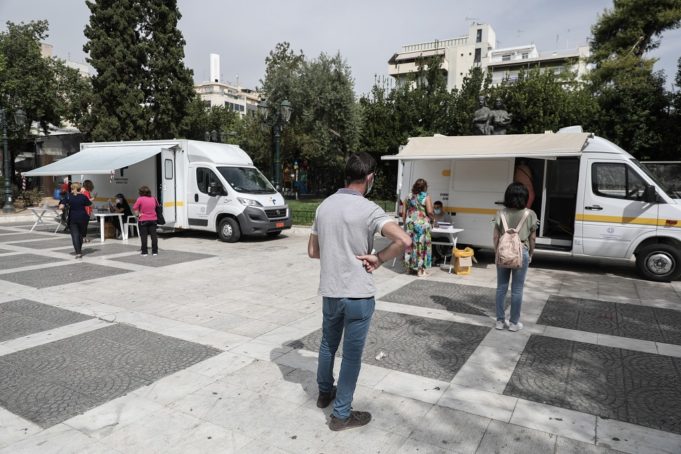 ÔÝóô êïñïíïúïý áðü ÊéíçôÝò ÏìÜäåò Õãåßáò (ÊÏÌÕ) óôçí ðëáôåßá ÄáâÜêç óôçí ÊáëëéèÝá, ôçí ÄåõôÝñá 5 Ïêôùâñßïõ 2020. (EUROKINISSI/ÓÔÅËÉÏÓ ÌÉÓÉÍÁÓ)