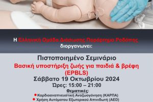 Η Διεύθυνση Εκπαίδευσης της Ελληνικής Ομάδας Διάσωσης Ροδόπης σε συνεργασία με το τμήμα Πρώτων Βοηθειών, θα πραγματοποιήσουν στις 19 Οκτωβρίου 2024 και ώρες...