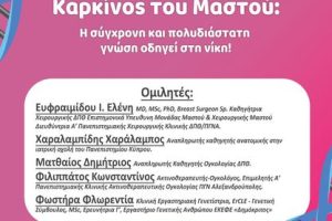 Στη Λέσχη Κομοτηναίων θα πραγματοποιηθεί εκδήλωση-ομιλία με θέμα “Καρκίνος του μαστού: Η σύγχρονη και πολυδιάστατη γνώση οδηγεί στη νίκη!” που διοργανώνεται...
