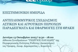 Το Περιφερειακό Τμήμα Θράκης του Τεχνικού Επιμελητηρίου Ελλάδας διοργανώνει επιστημονική ημερίδα με θέμα: «Αντιπλημμυρικός Σχεδιασμός Αστικών και Αγροτικών...