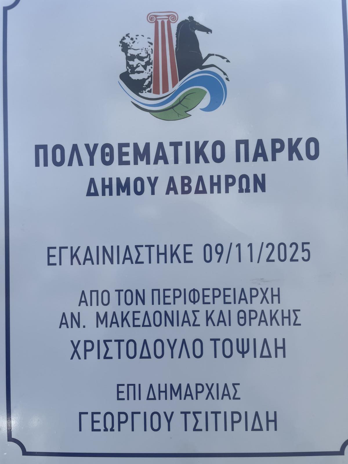 Ο Περιφερειάρχης Ανατολικής Μακεδονίας και Θράκης, Χριστόδουλος Τοψίδης, εγκαινίασε το νέο Πολυθεματικό Πάρκο στον Πετεινό του Δήμου Αβδήρων, έναν χώρο που προσθέτει πνοή, ομορφιά και ζωή στην περιοχή.
