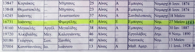 * Σχετικά με τον Ιωάννη Εμμ. Φιμερέλη όπως βλέπουμε από έγγραφα του Ιστορικού Αρχείου της Ερμούπολης ήταν Αινίτης έμπορος και είχε ζητήσει τη μεταδημότευση του ιδίου και της γυναίκας του Μαρίας στο Δήμο της Ερμούπολης, δίδοντας και τον προβλεπόμενο όρκο στη Νομαρχία Κυκλάδων στις 27 Μαΐου 1883. Ήταν τότε 43 ετών. (www.alexpolisonline.com/2016/11/19.html).
