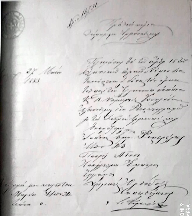 Αίτηση του Ιωάννη Φιμερέλη προς τον Δήμαρχο Ερμουπόλεως (27/5/1883) |