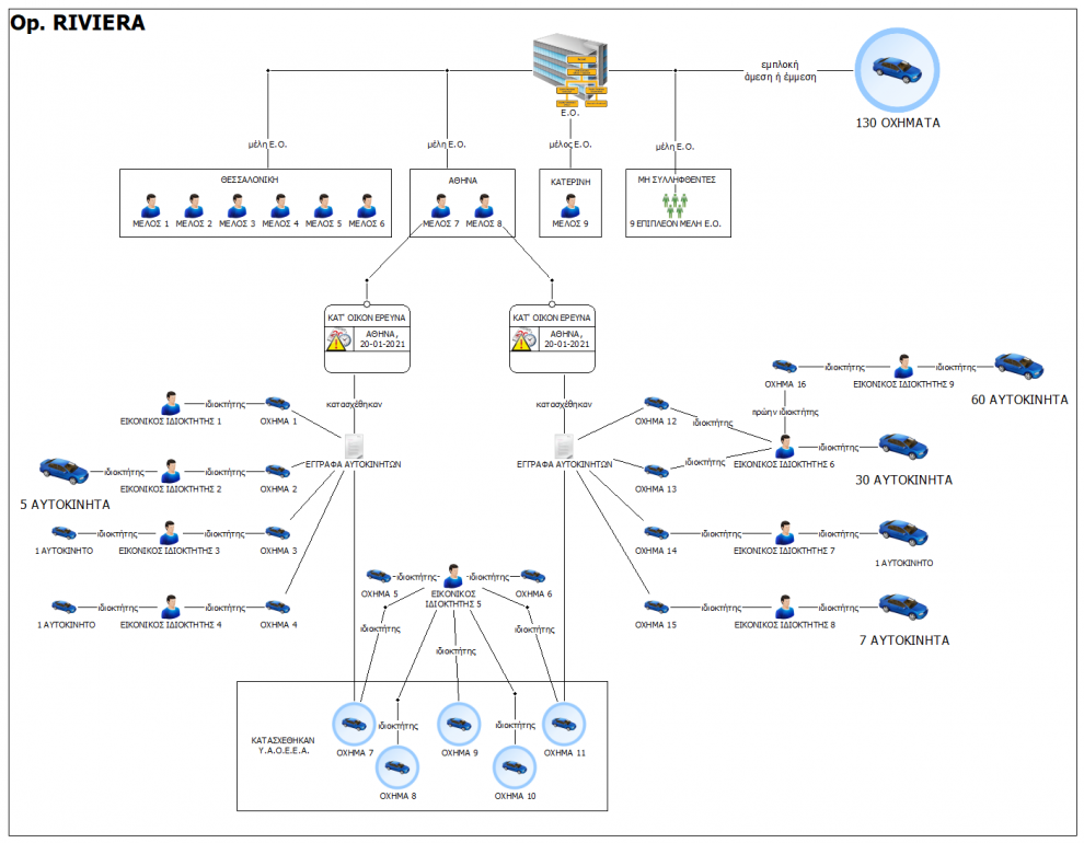 - πλήθος εγγράφων που αφορούν τη μεταβίβαση δεκάδων οχημάτων της εγκληματική οργάνωσης σε στοιχεία «αχυρανθρώπων»,