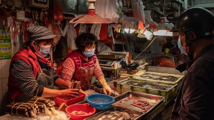 Ένα συνηθισμένο πρωινό του Δεκεμβρίου, μια από τις αγορές τροφίμων στην κινεζική πόλη Γουχάν είναι γεμάτη από κόσμο που πήγε να αγοράσει λαχανικά αλλά και ζωντανά ψάρια, βατράχους και χελώνες.