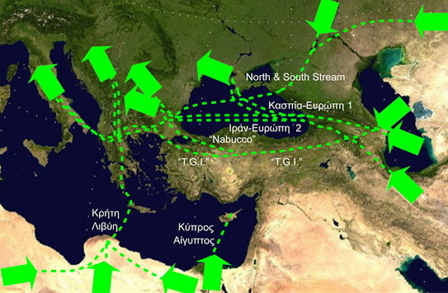 Αν λοιπόν στο γεωοικονομικό πεδίο υπάρχει κάτι νέο, μπορεί να αναζητηθεί σε μια νέα συμφωνία με τη Ρωσία, και στην αναβίωση του Εύξεινου αγωγού φυσικού αερίου (31-8-2003). Επίσης στην παλιννόστηση της γεωοικονομίας μας, με έως και τριπλό bypass στο Μικρασιατικό εδαφικό σώμα (βλέπε χάρτη, 2001, 2003 & 2009), πέραν της επίλυσης του ενεργειακού της Ευρώπης, και πέραν της δημιουργίας Ελληνικού ενεργειακού κόμβου. Όχι βέβαια σαν τον υπαρκτό, που θυμίζει το “Ναι, αλλά κόμβος”, στην παλιά ταινία: “Ούτε γάτα ούτε ζημιά”.