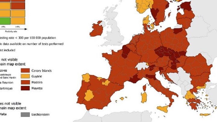 Υπενθυμίζεται ότι οι χάρτες του ECDC ανανεώνονται κάθε Πέμπτη, σύμφωνα με τη Σύσταση του Ευρωπαϊκού Συμβουλίου που έχει ως στόχο την εφαρμογή μιας συντονισμένης προσέγγισης μεταξύ των χωρών της ΕΕ όσον αφορά τον περιορισμό της ελεύθερης κυκλοφορίας για την αντιμετώπιση της πανδημίας. Το ECDC δεν συλλέγει στοιχεία για το Ηνωμένο Βασίλειο, την Ελβετία, τις βαλκανικές χώρες (εκτός εκείνων που ανήκουν στην Ε.Ε.), την Ουκρανία, τη Λευκορωσία και τη Ρωσία.