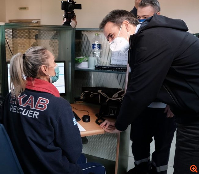 Η επίσκεψη του πρωθυπουργού στο Κέντρο Επιχειρήσεων του ΕΚΑΒ