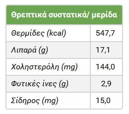 Πρόκειται για πιάτο με εξαιρετική παρουσία φυτικών ινών. Πάνω από το 50% των φυτικών ινών που χρειαζόμαστε ημερησίως το βρίσκουμε σε αυτό το πιάτο. Επίσης, περιέχει αρκετή πρωτεΐνη, η οποία προκύπτει από ποικιλία λαχανικών, κάτι που αυξάνει τη βιοδιαθεσιμότητά της. Τέλος, ο σίδηρος που περιέχεται παρουσιάζει ακόμα καλύτερη απορρόφηση κάτι που οφείλεται στα καροτενοειδή (καρότο) και στο μηλικό οξύ (μικρή ποσότητα κρασιού).