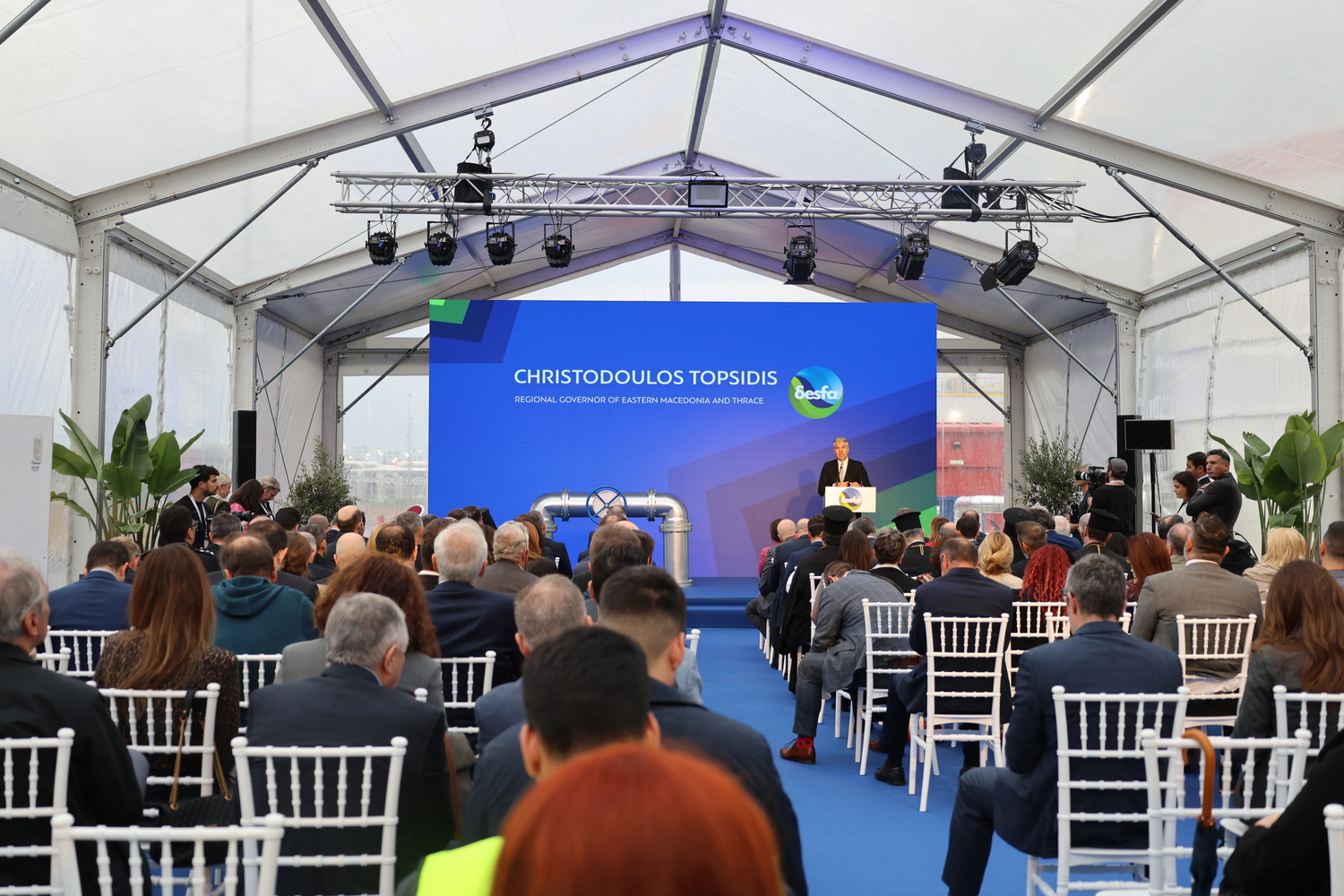 Στα εγκαίνια του Σταθμού Συμπίεσης Φυσικού Αερίου του ΔΕΣΦΑ στη Βιομηχανική Περιοχή Κομοτηνής, παρουσία του Υφυπουργού Περιβάλλοντος και Ενέργειας κ. Νίκου Τσάφου, της Ανώτατης Εκτελεστικής Διευθύντριας ΔΕΣΦΑ κας Maria Rita Galli και υψηλών αντιπροσωπειών από τις χώρες του «Κάθετου Διαδρόμου», παρέστη και χαιρέτισε, το μεσημέρι της Τρίτης 4 Νοεμβρίου 2025, ο Περιφερειάρχης Ανατολικής Μακεδονίας και Θράκης κ. Χριστόδουλος Τοψίδης. Χαρακτήρισε την ημέρα «ιδιαίτερα σημαντική για την Περιφέρεια και τη χώρα», υπογραμμίζοντας ότι το έργο ενισχύει τον ρόλο της Ελλάδας ως πυλώνα ενεργειακής σταθερότητας και καθιστά την Ανατολική Μακεδονία και Θράκη πρωταγωνίστρια στην εθνική στρατηγική για την ενέργεια, την οικονομία και την ανάπτυξη.