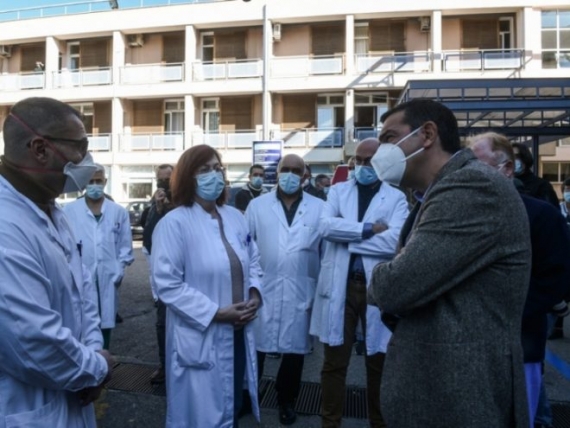 Τον κ. Τσίπρα υποδέχθηκε η διοικήτρια Θεσσαλονικιά Καρατζόγλου και στη συνέχεια ακολούθησε σύσκεψη με τη συμμετοχή διεθυντών κρίσιμων κλινικών που έχουν σχέση με την αντιμετώπιση της πανδημίας.