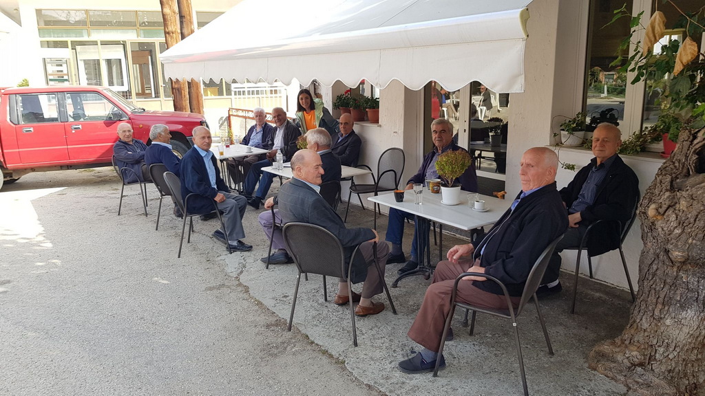 Σε μια γραφική πλατεία περιστοιχισμένη από παραδοσιακά καφενεία, κάτοικοι του χωριού συνδιαλλάχθηκαν με τους ενθουσιώδεις πεζοπόρους. Οι λιγοστοί και ως επί το πλείστον ηλικιωμένοι κάτοικοι του χωριού δεν έχασαν ευκαιρία να καλωσορίσουν και να μοιραστούν ιστορίες για τον τόπο τους δείχνοντας την αγάπη τους για αυτόν.
