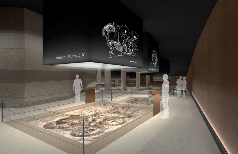 Οι μουσειογραφικές αρχές της έκθεσης άπτονται της διαμόρφωσης μιας ευκρινούς και απλής αφηγηματικής πορείας, αλλά και της εξασφάλισης των κατάλληλων συνθηκών για τη διατήρηση, την προστασία και την ανάδειξη των αρχαιοτήτων. Ο κεντρικός πυρήνας της έκθεσης διαμορφώνεται σε δύο επίπεδα, ισόγειο και όροφο. Στο ισόγειο, διαμορφώνεται χώρος πολλαπλών χρήσεων για διαλέξεις, εκδηλώσεις και προβολές. Το δυτικό τμήμα του διαμορφώνεται σε εκθεσιακό χώρο και το ανατολικό ως αποθήκη. Στον όροφο εγκαθίστανται οι ηλεκτρομηχανολογικές εγκαταστάσεις του κτηρίου. Το έργο περιλαμβάνει τη διαμόρφωση του περιβάλλοντος χώρου, με πρόσβαση για άτομα με κινητικά προβλήματα, χώρους στάθμευσης και βοηθητικές εγκαταστάσεις, ώστε να μπορεί να υποδεχθεί μεγάλο αριθμό επισκεπτών και να λειτουργήσει ως σημαντικό κέντρο πολιτισμού και έρευνας.