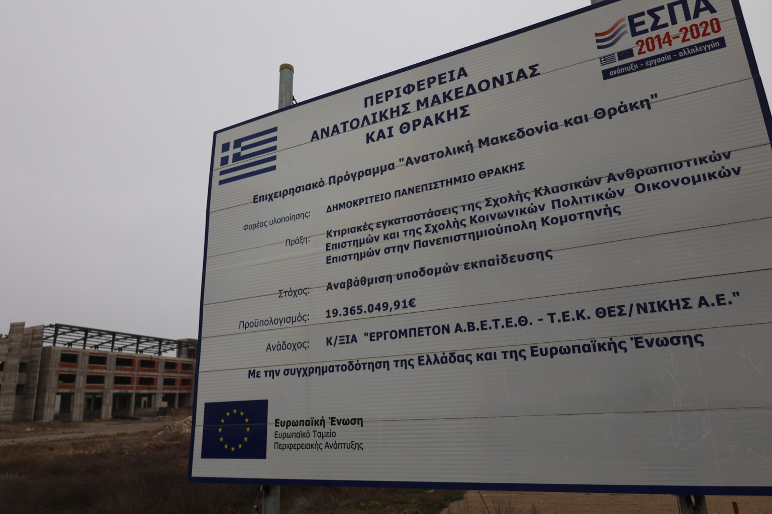(φωτό: «Πάγωσαν» οι εργασίες κατασκευής για το νέο κτίριο της Σχολής Κλασσικών Σπουδών, σε οικόπεδο της Πανεπιστημιούπολης Κομοτηνής, δίπλα στο κτίριο της Νομικής Σχολής )