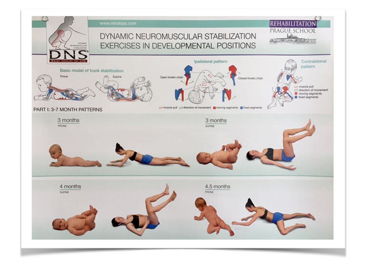 Με βάση αυτά τα δεδομένα, οι επιστήμονες της Πράγας ανέπτυξαν την δυναμική νευρομυϊκή σταθεροποίηση. Το πρόγραμμα αποτελείται από προοδευτικά εξελισσόμενες κινήσεις/ασκήσεις. Οι κινήσεις αυτές αντιστοιχούν στις αναπτυξιακές θέσεις τις οποίες προοδευτικά λαμβάνει ένα βρέφος από τη στιγμή της γέννησης έως την πλήρη κινητική ανάπτυξή του. Στόχος αυτών των κινήσεων είναι να σταθεροποιηθεί η σπονδυλική στήλη και οι αρθρώσεις.