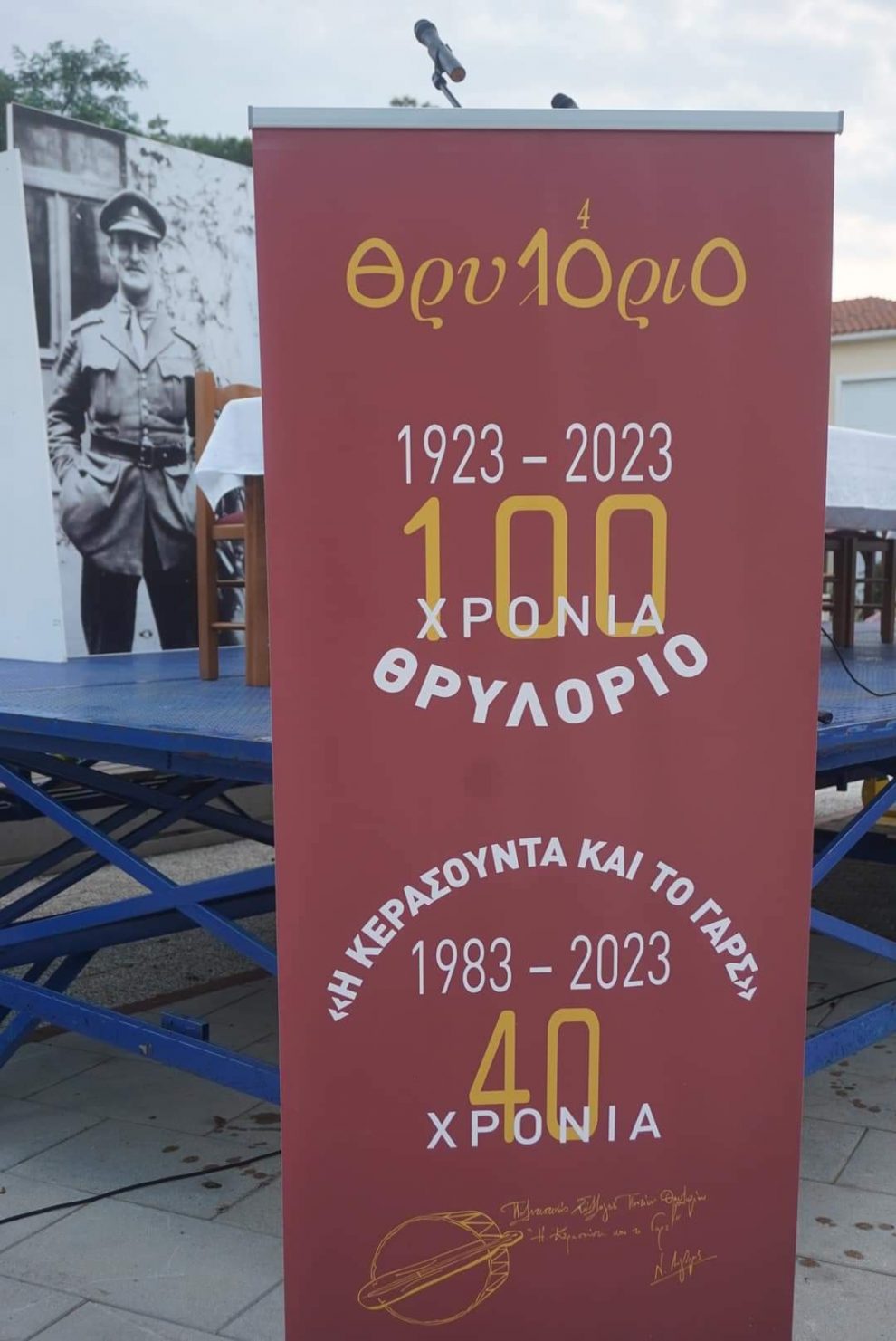 Τέλος αξίζει να τονιστεί ότι ο Καθηγητής και Στρατηγικός Σύμβουλος, κ. Νίκος Λυγερός, εμπνεύστηκε και δημιούργησε το λογότυπο της διπλής επετείου των 100 χρόνων του Θρυλορίου και των 40 χρόνων του Συλλόγου.