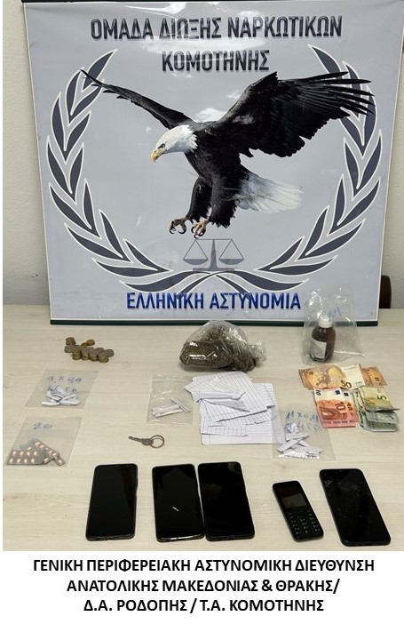 Αναλυτικότερα, στην πρώτη περίπτωση, την 9-10-2024 το πρωί, σε οικισμό της Ροδόπης, αστυνομικοί της Ομάδας Δίωξης Ναρκωτικών του Τμήματος Ασφάλειας Κομοτηνής έπειτα από κατάλληλη αξιοποίηση πληροφοριών για διακίνηση ναρκωτικών ουσιών, συνέλαβαν τέσσερις ημεδαπούς. Ειδικότερα, στο πλαίσιο οργανωμένης επιχείρησης πραγματοποιήθηκαν έρευνες από τους παραπάνω αστυνομικούς, με τη συνδρομή του αστυνομικού σκύλου ανίχνευσης ναρκωτικών «LAIKA» της Υποδιεύθυνσης Ασφαλείας Αλεξανδρούπολης, κατά τη διάρκεια των οποίων βρέθηκαν συνολικά σε δύο οικίες, ένα Ι.Χ.Ε. αυτοκίνητο και στην κατοχή των δραστών κατά περίπτωση και κατασχέθηκαν μεταξύ άλλων -24- χάρτινες συσκευασίες με μικροποσότητες ναρκωτικής ουσίας «Μπονσάι», -1- πλαστικό βάζο με φυτικά αποσπάσματα βάρους -265- γραμμαρίων και -1- γυάλινο μπουκάλι με άγνωστη ουσία βάρους -204- γραμμαρίων που χρησιμοποιούσαν για την παραγωγή της παραπάνω ναρκωτικής ουσίας, -20- ναρκωτικά δισκία, χρηματικό ποσό και κινητά τηλέφωνα.