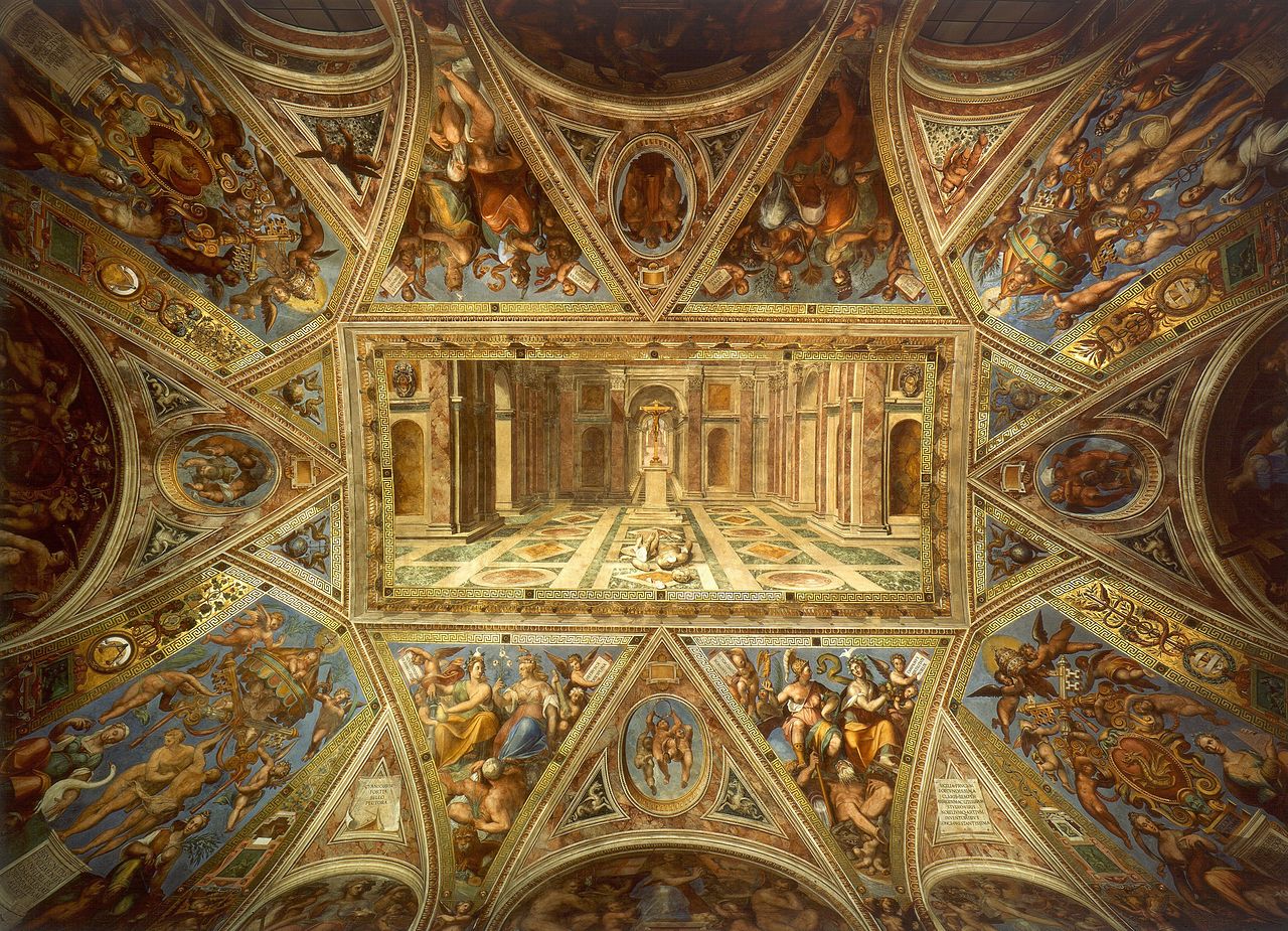 Το έργο που ξεκίνησε το 1508 ολοκληρώθηκε το 1524, καλύπτοντας μάλιστα έργα άλλων καλλιτεχνών με τις ευχές του ποντίφικα. Μετά το θάνατο του Ραφαήλ το έργο ανέλαβαν οι βοηθοί του, Τζούλιο ΡομάνοΤζιανφραντσέσκο Πένι και Ραφαελίνο ντελ Κόλε. Εδώ ανάμεσα σε άλλα μπορείτε να θαυμάσετε την εξαιρετική τοιχογραφία η «Σχολή των Αθηνών» όπου συγκεντρώνει τους Έλληνες φιλοσόφους, ιστορικούς κ.ά. όπως τον Πλάτωνα, τον Αριστοτέλη, τον Πυθαγόρα, τον Ευκλείδη, τον Θουκυδίδη και όχι μόνο, σε ένα μεγάλων διαστάσεων έργο.