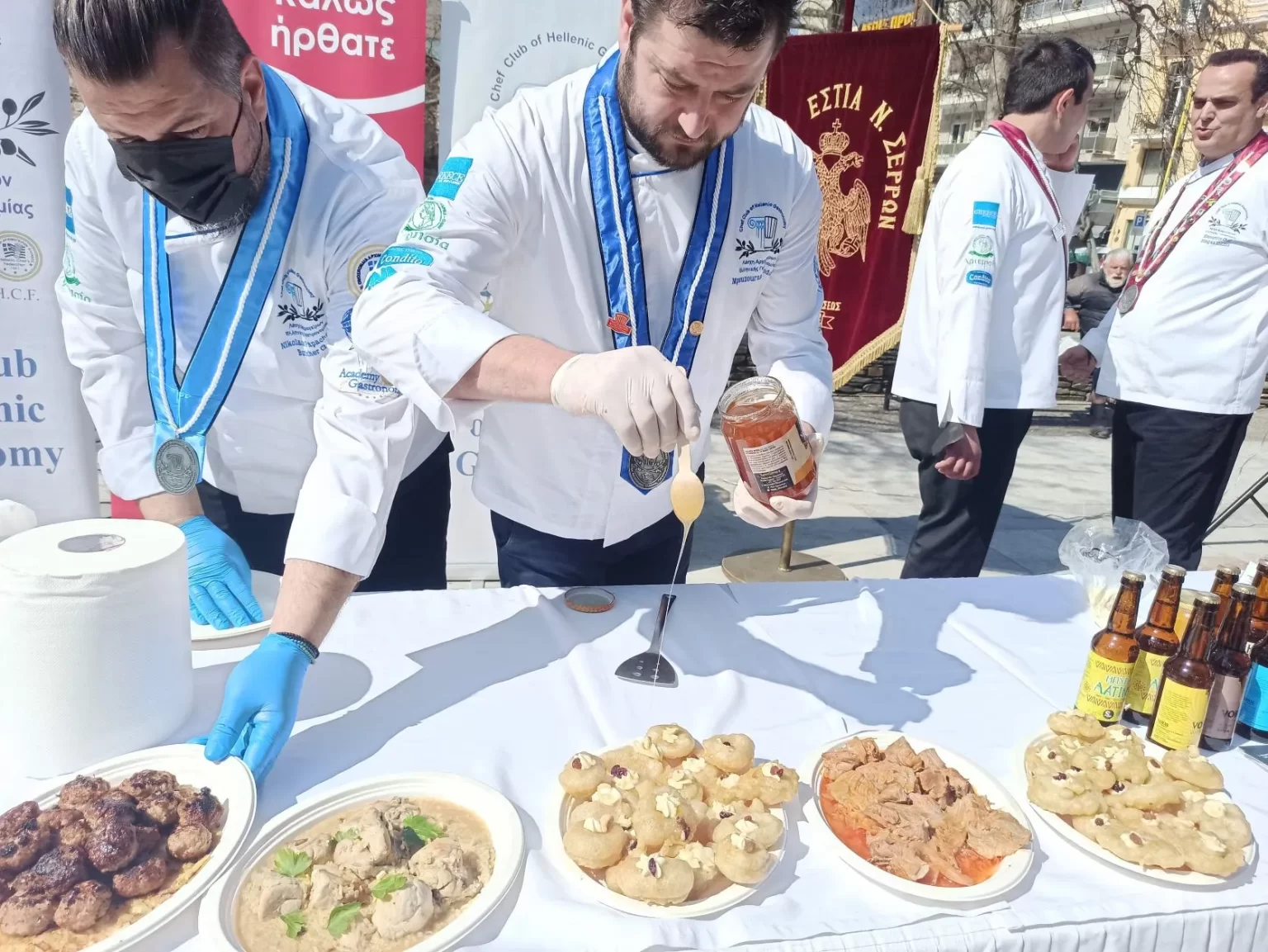 Παραδοσιακές γεύσεις, τραγούδια, κέφι και χορό απόλαυσαν όσοι βρέθηκαν το μεσημέρι της Κυριακής 27 Μαρτίου 2022 στην πλατεία Ελευθερίας της πόλης των Σερρών. Η πολιτιστική εκδήλωση με θέμα: «Πάντρεμα Θρακικού Γαστρονομικού Πολιτισμού και Σύγχρονης Γαστρονομίας» σημείωσε πολύ μεγάλη επιτυχία με εκατοντάδες Σερραίους να μαθαίνουν τα μυστικά του Θρακιώτικου Γαστρονομικού πολιτισμού και να γεύονται τα πεντανόστιμα εδέσματα που ετοίμασαν οι Σεφ της Λέσχης Αρχιμαγείρων Ελληνικής Γαστρονομίας.